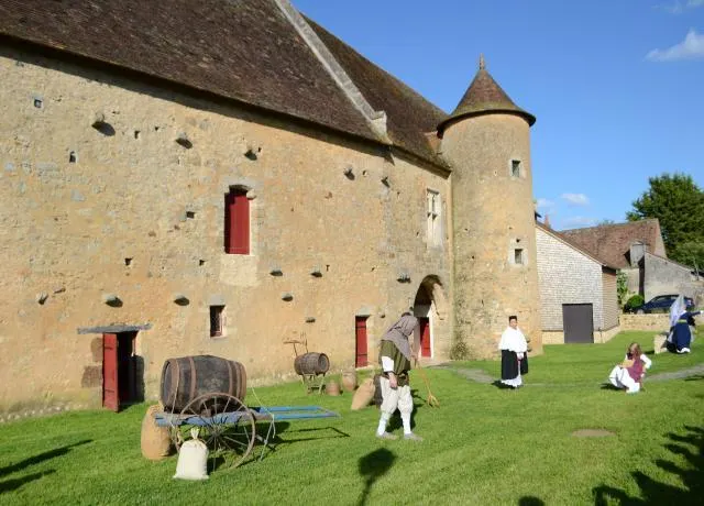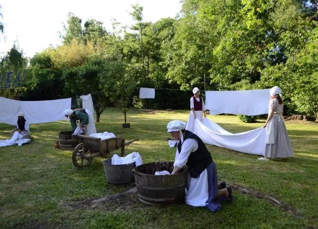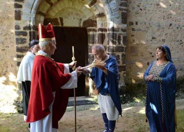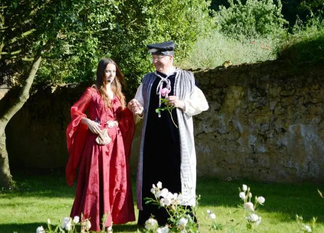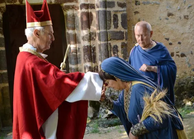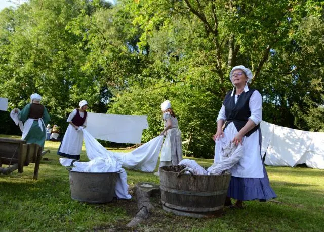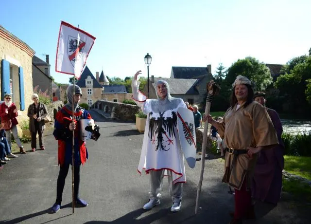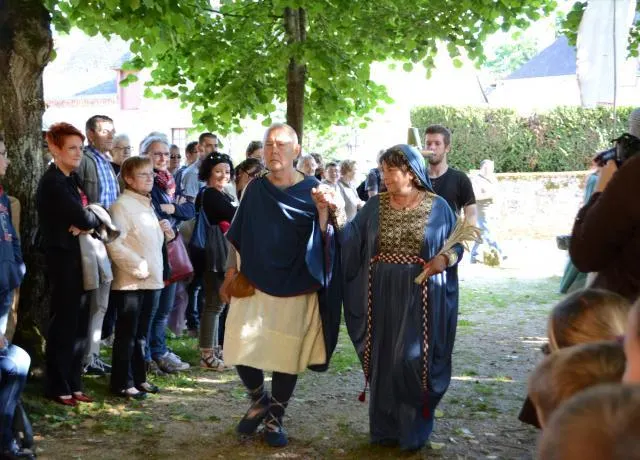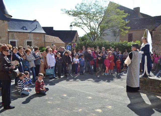 Les scènes s’enchaînent, le décor change à chaque fois. Du pont, les spectateurs sont partis écouter de la harpe dans le centre. Puis, direction la cour devant l’église Saint-Hilaire, avant de partir pour le Manoir de la cour, le jardin et de retourner à l’église. Chaque passage permet au public d’en apprendre plus sur l’histoire de la commune, tout en faisant le tour du village.