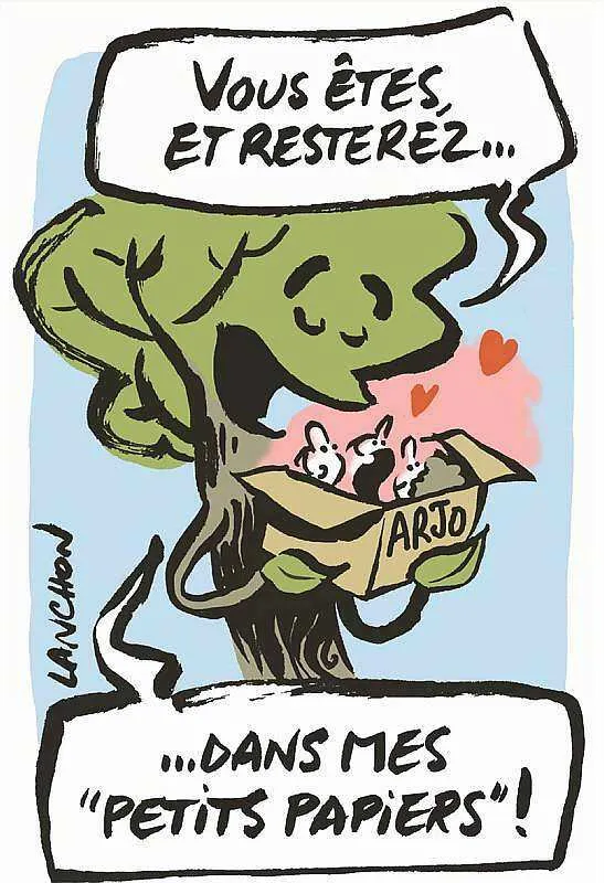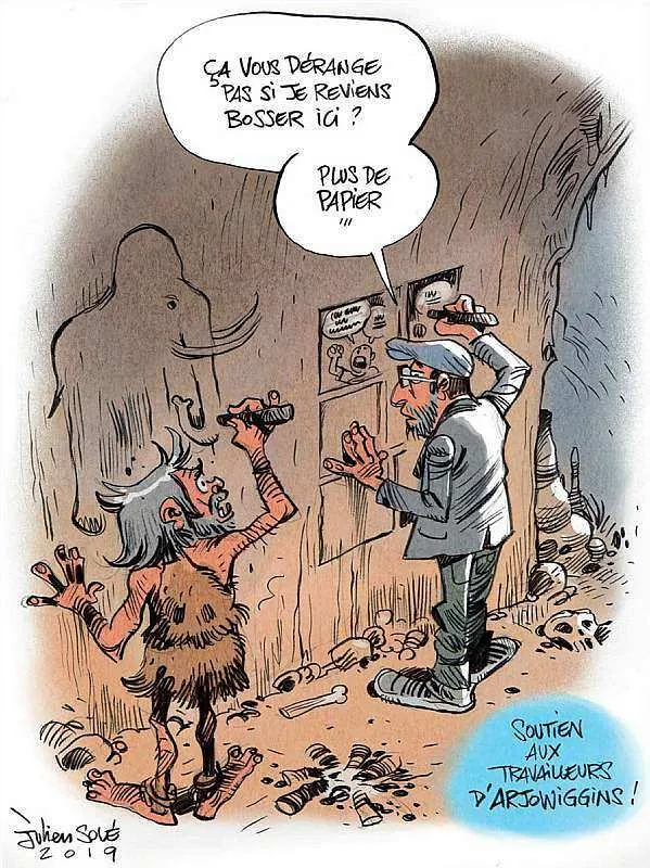 « Au départ, on aurait voulu faire venir les auteurs mais c'était trop juste. La plupart sont très pris. Alors, les auteurs ont accepté de nous faire des dessins pour parler de l'usine Arjowiggins. D'autres qui n'avaient pas le temps - c'était en plein festival d'Angoulême - ont envoyé un dessin en lien avec l'histoire du papier. Yann Arthus-Bertand nous a fourni deux photos. Certains de ses livres comme « La Terre vue du ciel » ont été imprimés sur du papier recyclé provenant d'Arjowiggins. Tian, street artist manceau, a fourni une sérigraphie ». Parmi les signatures : Étienne Davodeau, Emmanuel Lepage, Étienne Le Roux, Felix Meynet, Pierre Makyo…