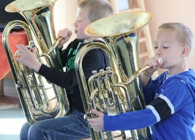 Ce mardi matin, un professeur du conservatoire de musique de Sablé-sur-Sarthe a initié des élèves de l'école d'Auvers-le-Hamon à la prise en main d'un instrument.