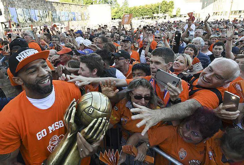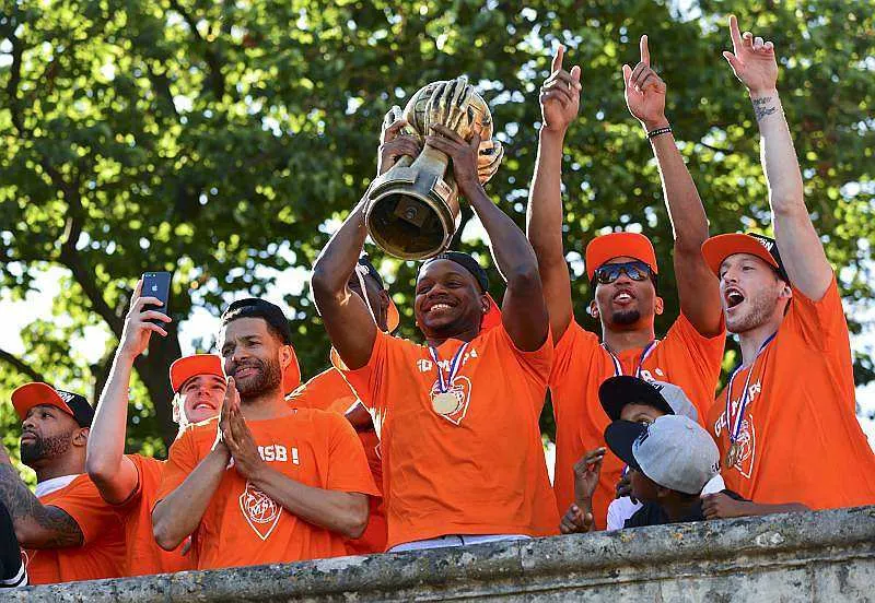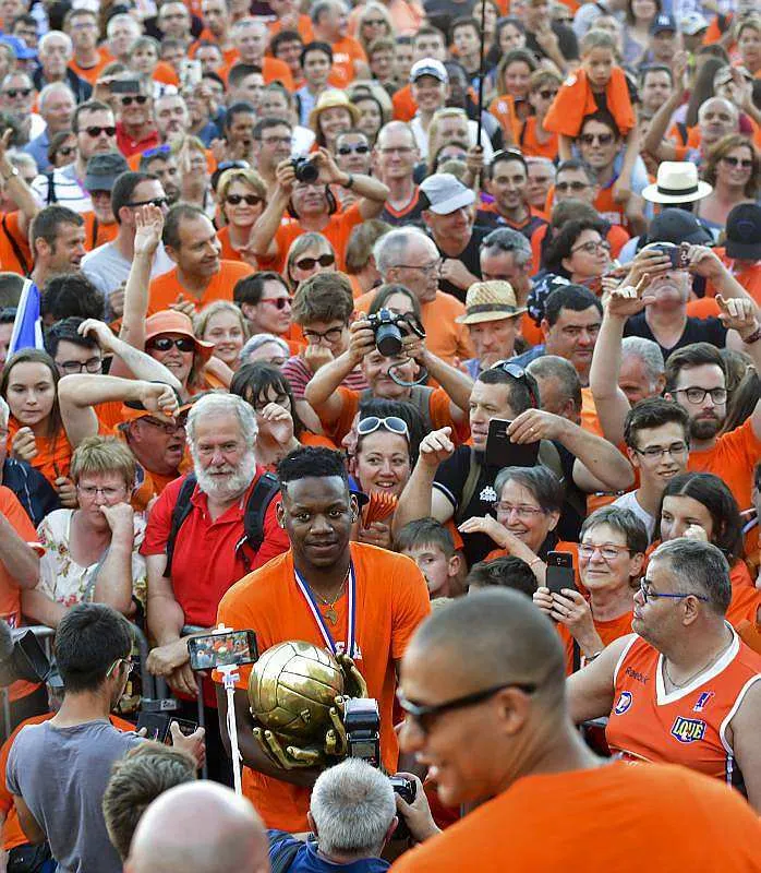 Les champions de France de basket ont été accueillis en héros ce lundi soir en centre-ville. Ils étaient plusieurs milliers.