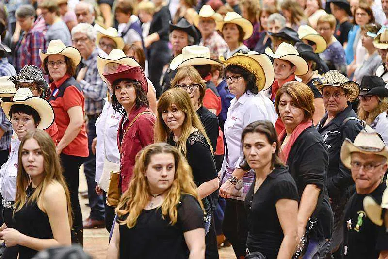 Et sur l’immense parquet, il ne reste plus beaucoup de place : tout le monde est bien aligné pour exécuter les danses en ligne.