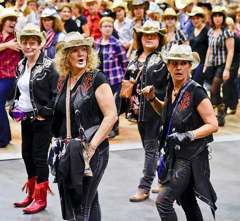 Santiags aux pieds, chapeau sur la tête et jeans pour tout le monde : oui, nous sommes bien au salon country western, qui a quitté la région parisienne et élu domicile au Mans pour sa 10e édition, ce week-end.