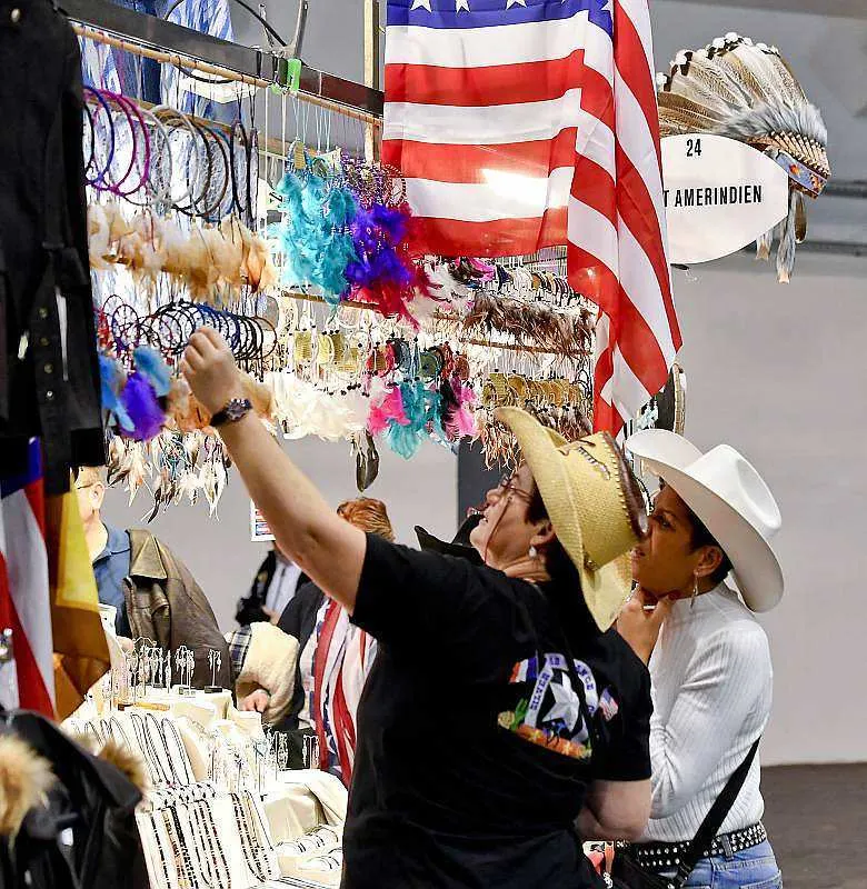 Et l’ambiance est fort sympathique dans les allées du salon, où sont vendus tous les accessoires indispensables aux amateurs de country (bijoux, santiags, vestes, boucles de ceinture, foulards, drapeaux...).