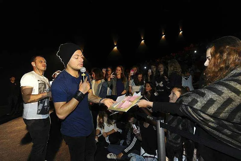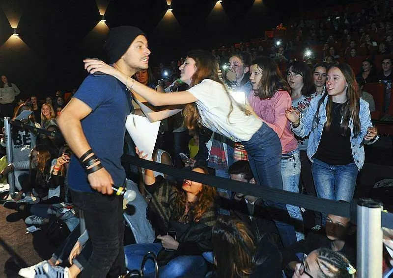 Installés dans leur fauteuil, les fans n’ont pu retenir leurs cris et leurs larmes face au trublion comédien, toujours partant pour une petite blague. Sarah et Elisa, qui le connaissent depuis trois ans, grâce à la série SODA, étaient aux premières loges : « On l’a déjà vu au Mans à son spectacle mais on était très très loin, là on est tout près », lance Sarah, avec des sanglots dans la voix.