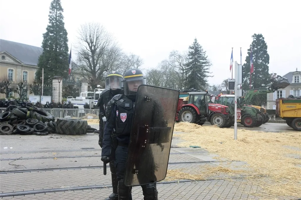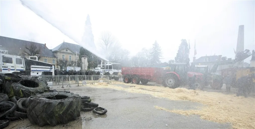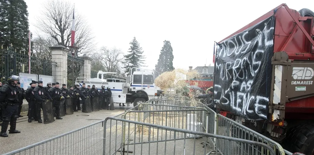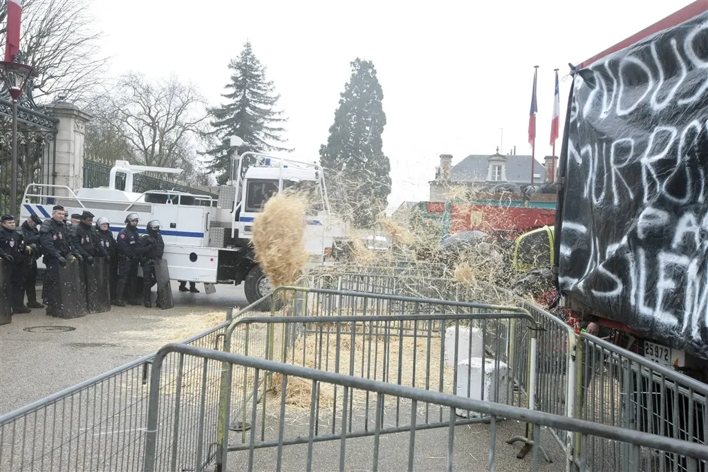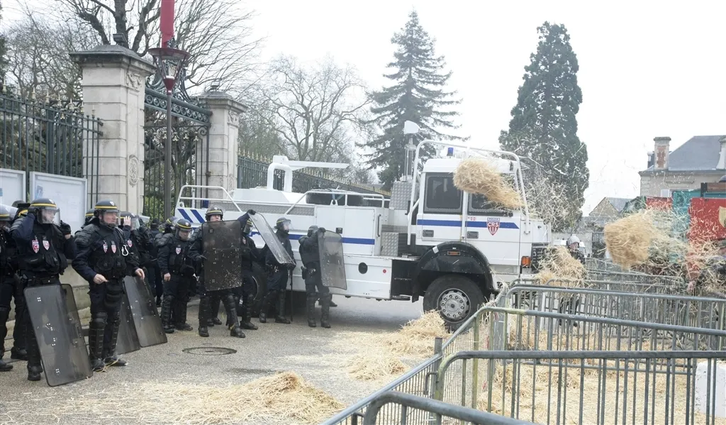Avant de quitter les lieux, ils ont déversé de la paille sur le sol et les forces de l'ordre, avant de leur jeter des oeufs. Ces derniers ont répliqué en utilisant leur canon à eau puis en jetant du gaz lacrymogène, afin de disperser la foule.