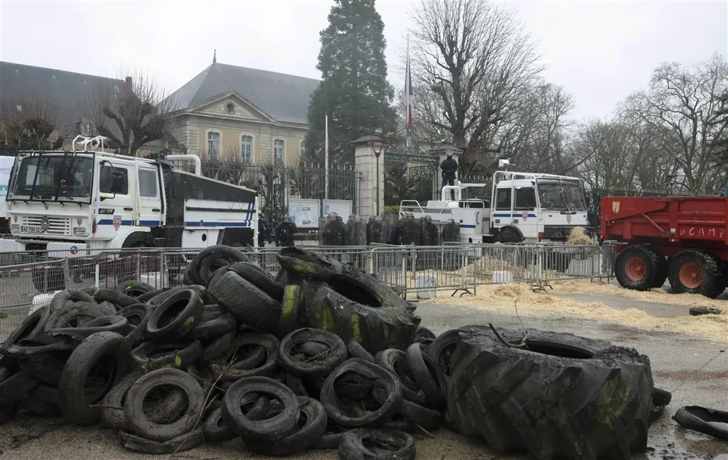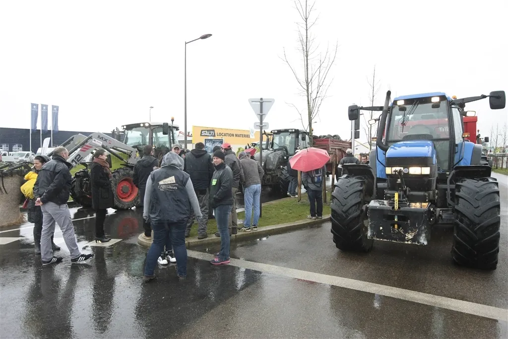 Après s'être donné rendez-vous au rond-point de Beauregard au nord de la ville, à celui de Yoplait au sud et à celui d'Auvours à l'Est, les tracteurs ont convergé vers le centre-ville et la préfecture. Ils y ont été accueillis par un cordon de CRS, deux rangées de barrières et deux camions à eau.