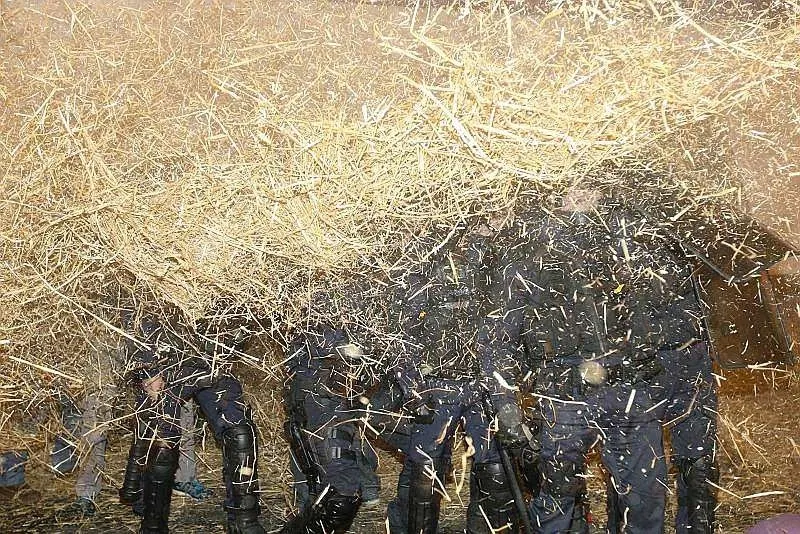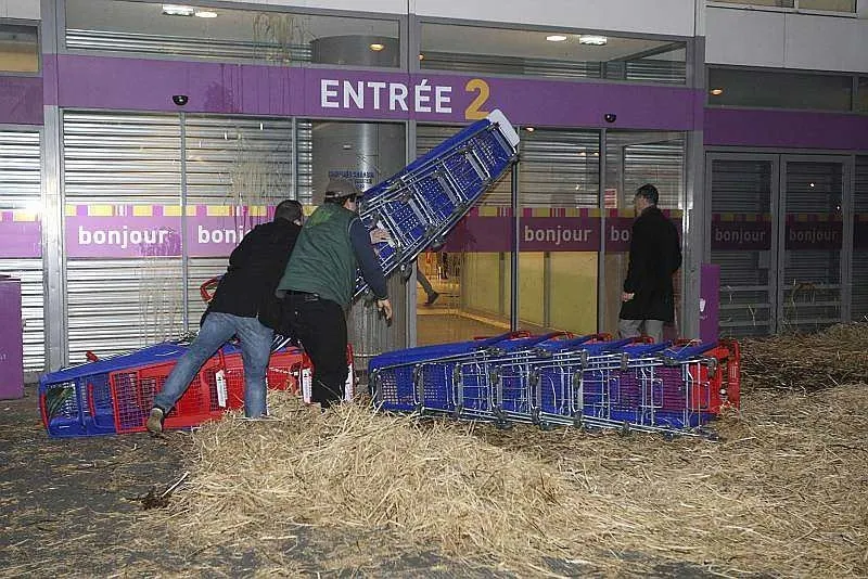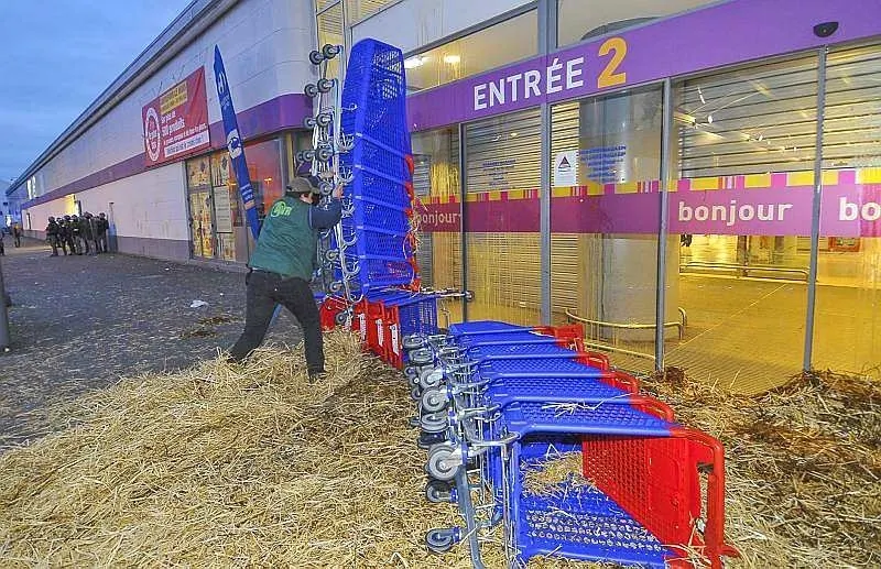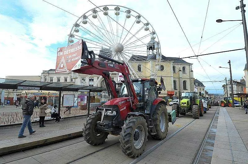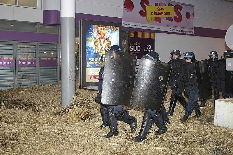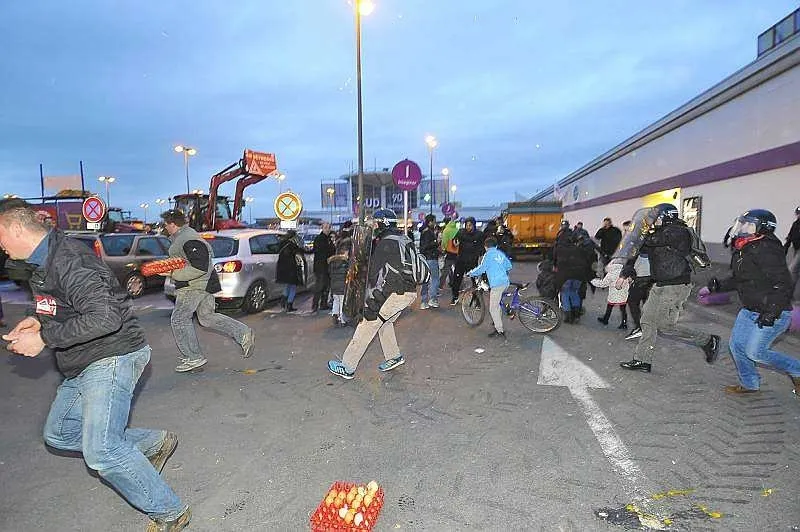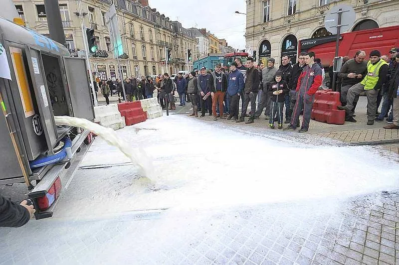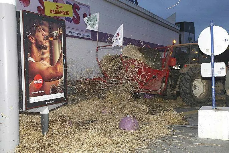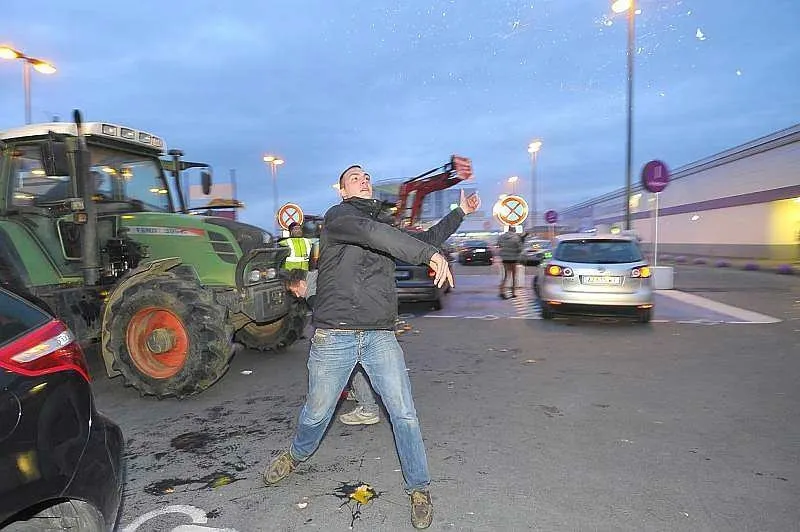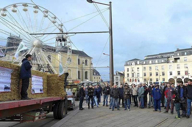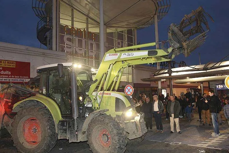 Après avoir été reçus à la préfecture en milieu d'après-midi, les manifestants ont quitté le centre-ville du Mans, non sans avoir avant déversé du lait sur les lignes de tramway. Ils se sont ensuite rendus au Carrefour centre sud où ils déversé de la paille et des oeufs sur le magasin et... les forces de l'ordre.