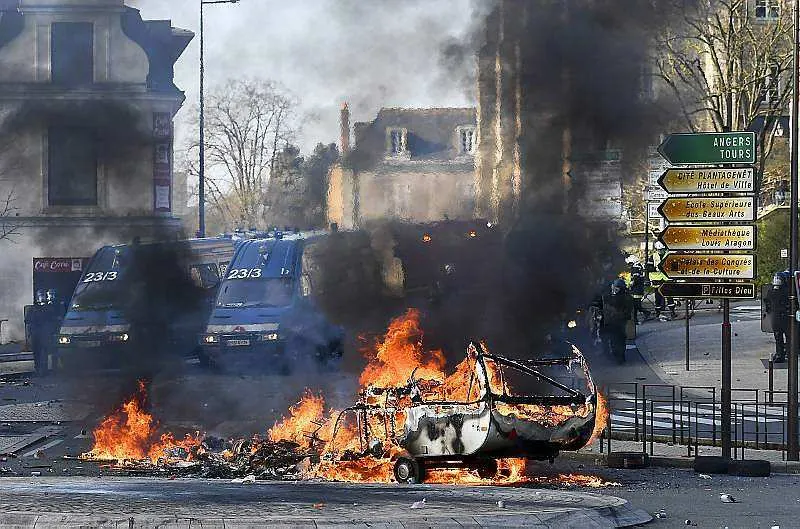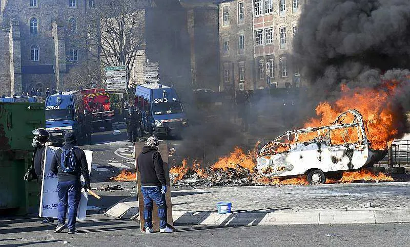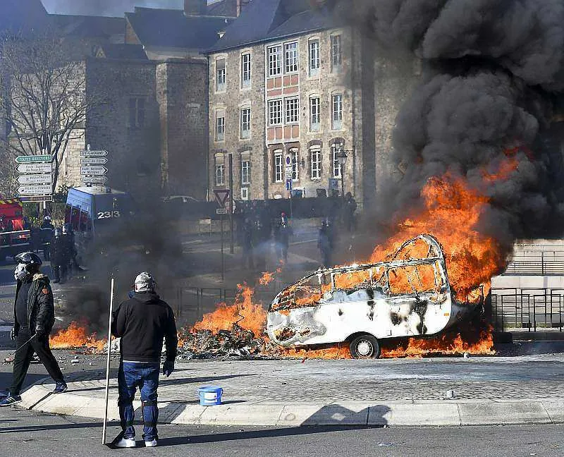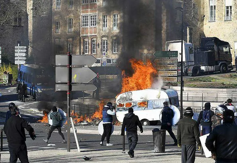 Caravane incendiée en haut du tunnel dans le centre du Mans, blocage de l’autoroute, blocage de la gare, face à face avec les forces de l’ordre, dégradation de fourgons de gendarmes mobiles ont notamment marqué cette journée d’actions.