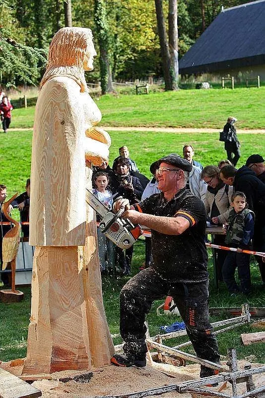 Ici des loups (dans un enclos) qui se laissent admirer, là une démonstration d'élagage de hauts arbres, plus loin un druide qui prépare sa potion magique, un impressionnant cheval percheron qui tracte des troncs coupés (notre vidéo ci-dessous)...