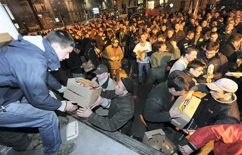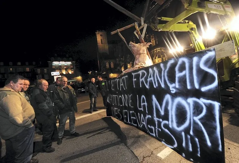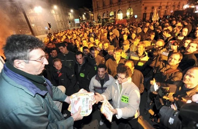 350 à 400 agriculteurs ont manifesté mercredi soir, au Mans. Ils réclamaient notamment une revalorisation des cours de la viande porcine et bovine.