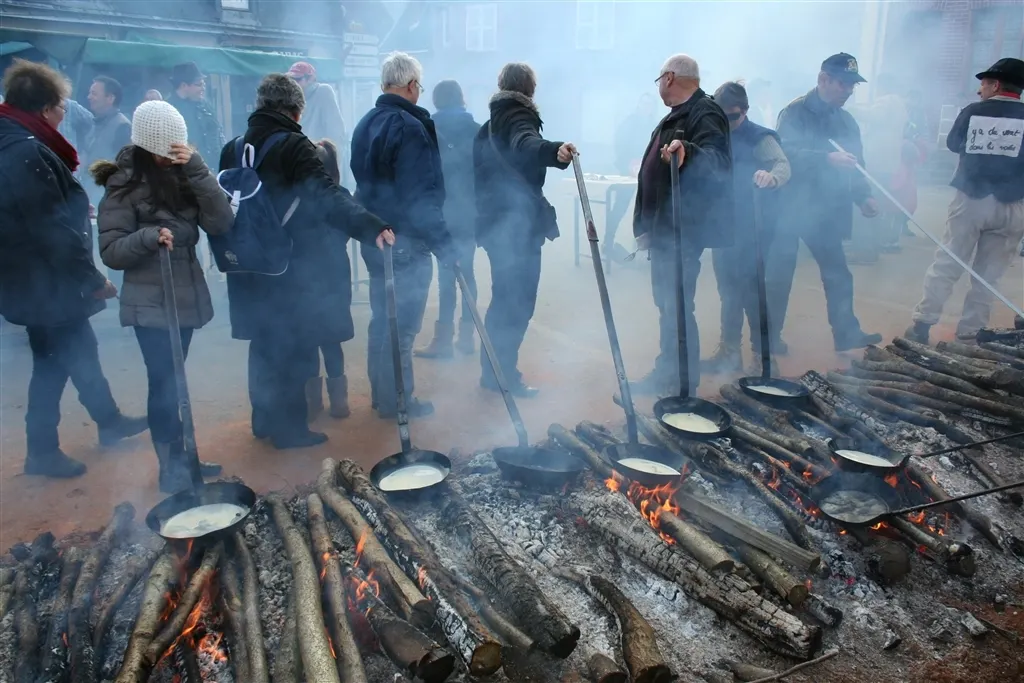 130 kg de farines, 80 douzaines d’œufs et des litres de lait sont nécessaires pour la préparation de la pâte. Des ingrédients récupérés dans les fermes alentours. Au final, ce sont environ 6 000 crêpes qui auront été cuites. Et, surtout, mangées.