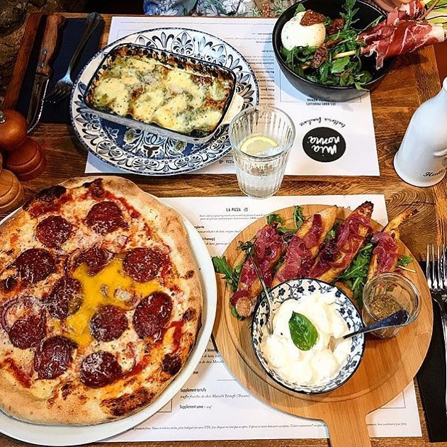 Faites un tour en Italie avec Mia Nonna, Le Clan des Mamas ! Les murs en pierres, les étagères remplies de pâtes et d’épices, les chaises en rotin et les nombreuses plantes nous mettent directement dans l’ambiance de ce “trattoria familiare”.Le restaurant nous offre un voyage au cœur de l’Italie et de ses spécialités et nous propose des plats généreux. On à l’eau à la bouche rien qu’en lisant le menu inspiré des bons petits plats des grands-mères italiennes : burratas, pizzas, pâtes, risottos et surtout, les fameux tiramisus de Mia Nonna ! Si vous aimez la truffe, vous allez être servis, car vous pourrez en déguster sur vos burratas, pizzas et pastas !