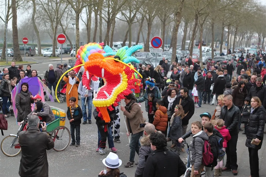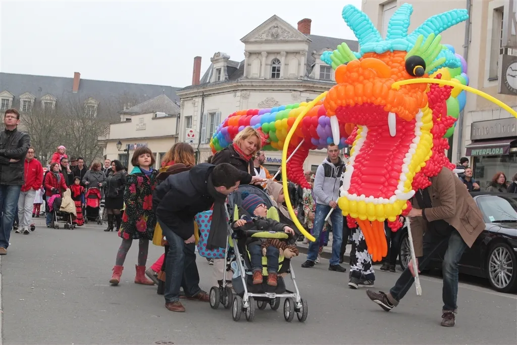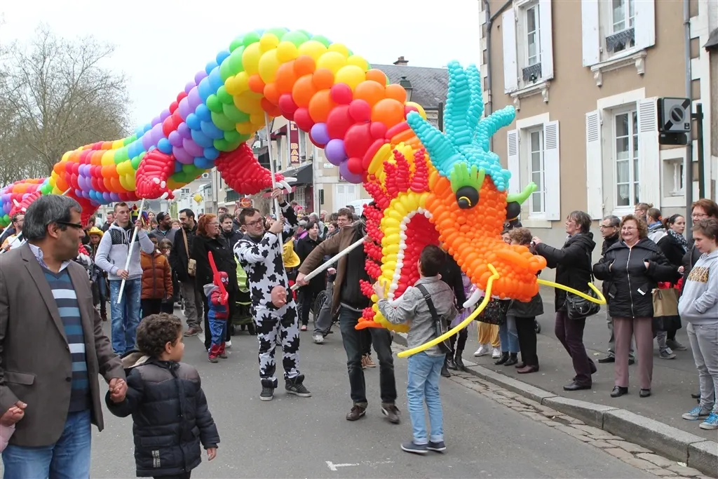 Il a volé la vedette à Monsieur Carnaval. La star du carnaval de La Flèche, c’était lui : le dragon multicolore de la Compagnie le Temps d’un Rêve.