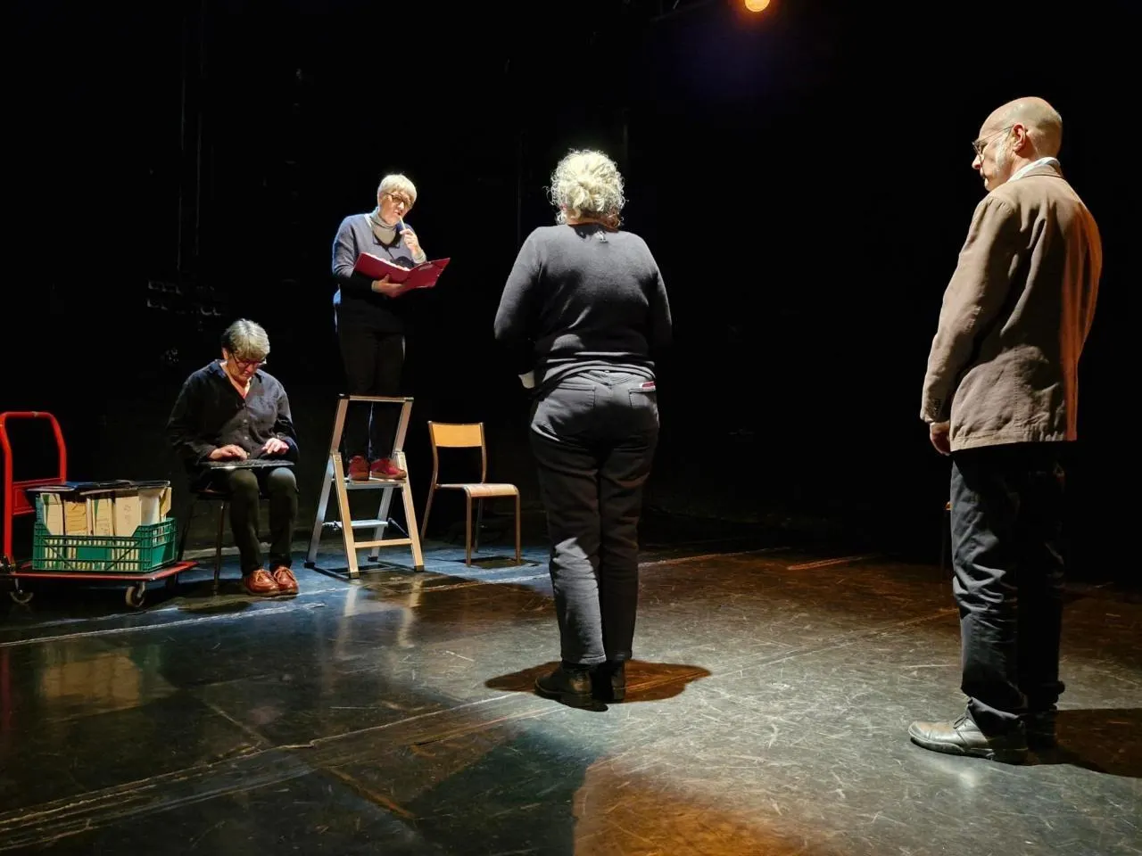 Durant une heure, la Compagnie des gens pluriels met en scène des tranches de vie d’un tribunal. © Le Maine Libre