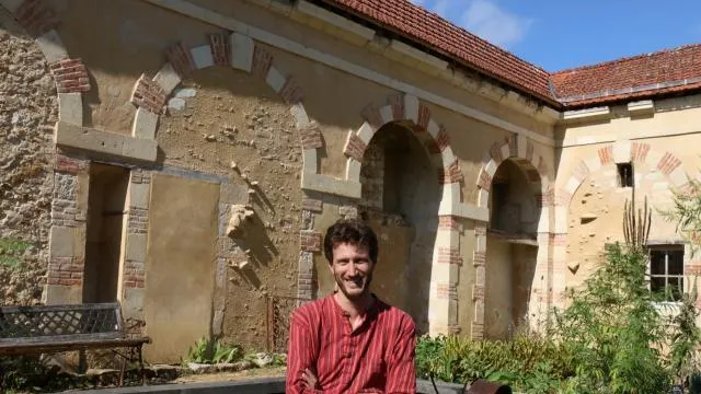 Derrière l’animateur du site, Julien Hardy, on distingue les arcades de l’ancien cloître. © Ouest-France