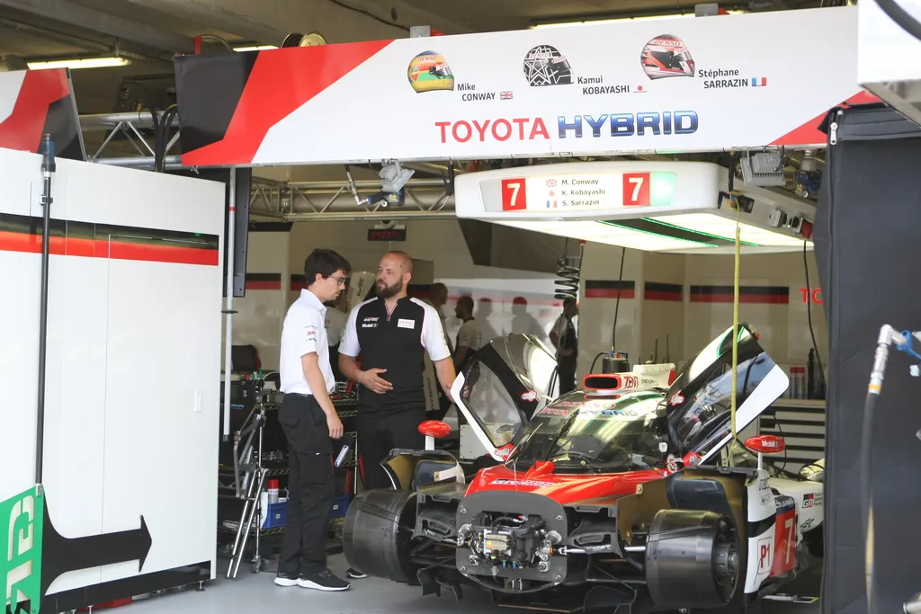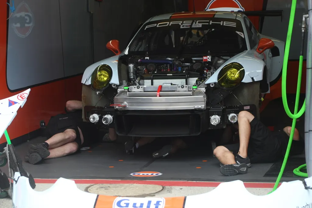 Près d'une heure avant la séance d'essais libres, l'ambiance diffère d'un stand à l'autre. Voitures désossées, moteur qui gronde, grandes discussions, simulation de changement de pilotes... La pression monte.