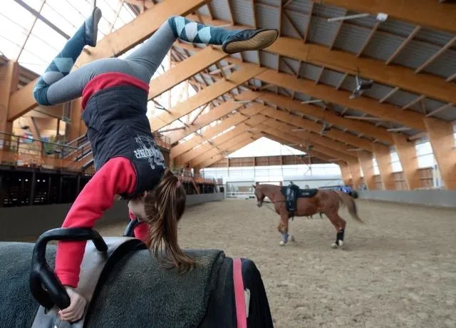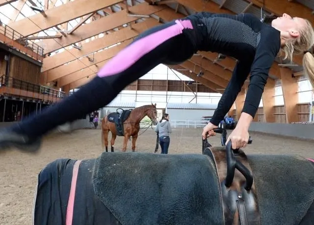 Sandra Tronchet dirige l'école de voltige équestre qui se trouve au pôle européen du cheval, à Yvré-L'Evêque.