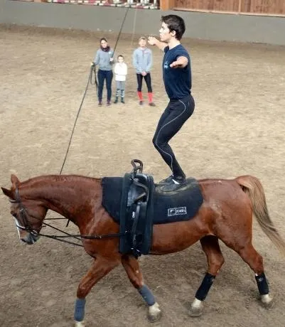 Jacques Ferrari, champion du monde de voltige, y entraîne les jeunes athlètes. Et prépare le spectacle qu'il a créé avec Sandra, intitulé Noroc.