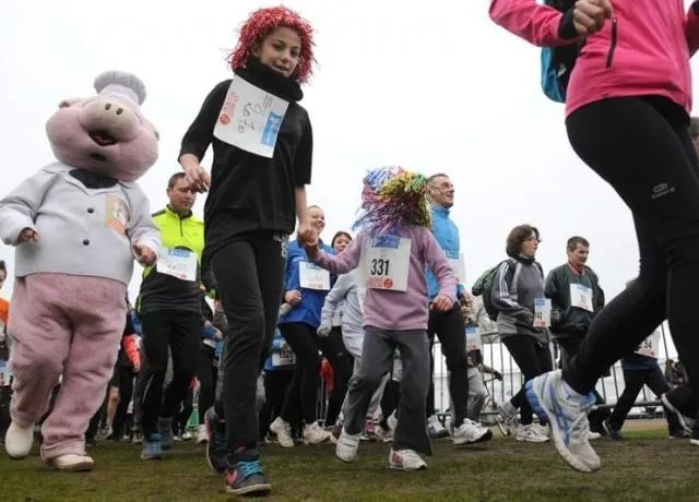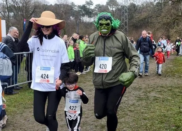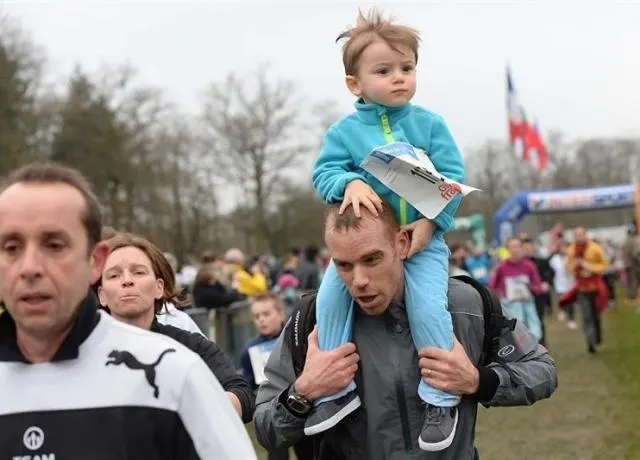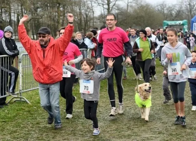 Ce dimanche matin, la course des familles a encore attiré une foule bigarrée, avec des scènes touchantes: gamins sur les épaules des parents, fillette courant avec son chien, poussette-fusée dans la boue...