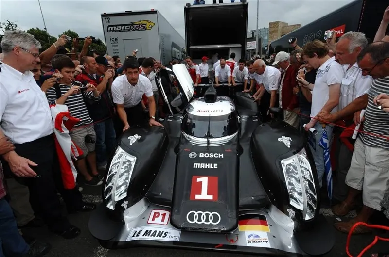 Le pesage des 56 voitures engagées aux 24 Heures du Mans se termine aujourd'hui, place des Jacobins. Pour le public, c'est l'occasion de voir voiture et pilotes de près. Retour en images.