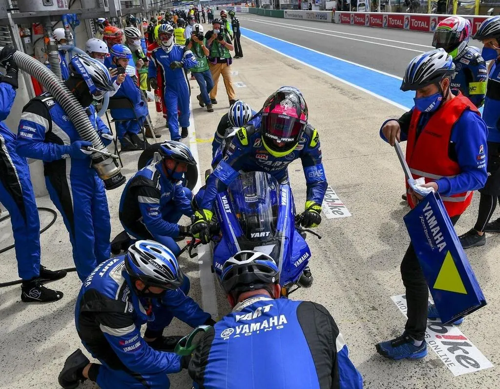 La couse par élimination a débuté sur le circuit Bugatti ! Sur le coup de 22 heures, la solide Yamaha du YART s’est arrêtée à son stand. L’équipe a tiré le rideau pour travailler à l’abri des regards : l’heure est grave. Le problème se situe au niveau du moteur.