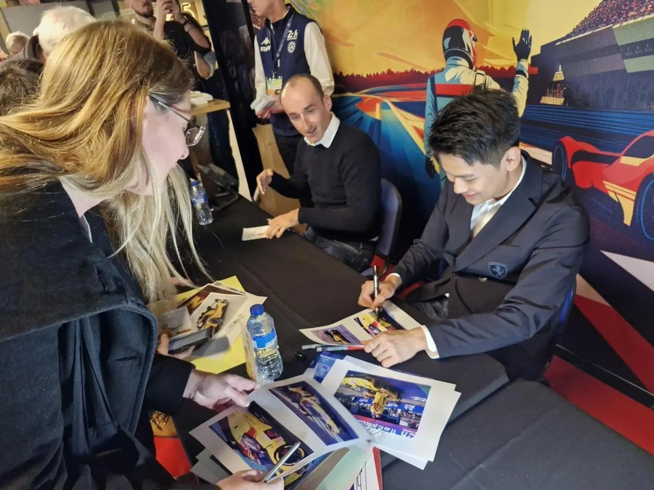 Robert Kubica et Yifei Ye prennent le temps de faire des dédicaces aux spectateurs venus pour l’avant-première du film. © Le Maine Libre