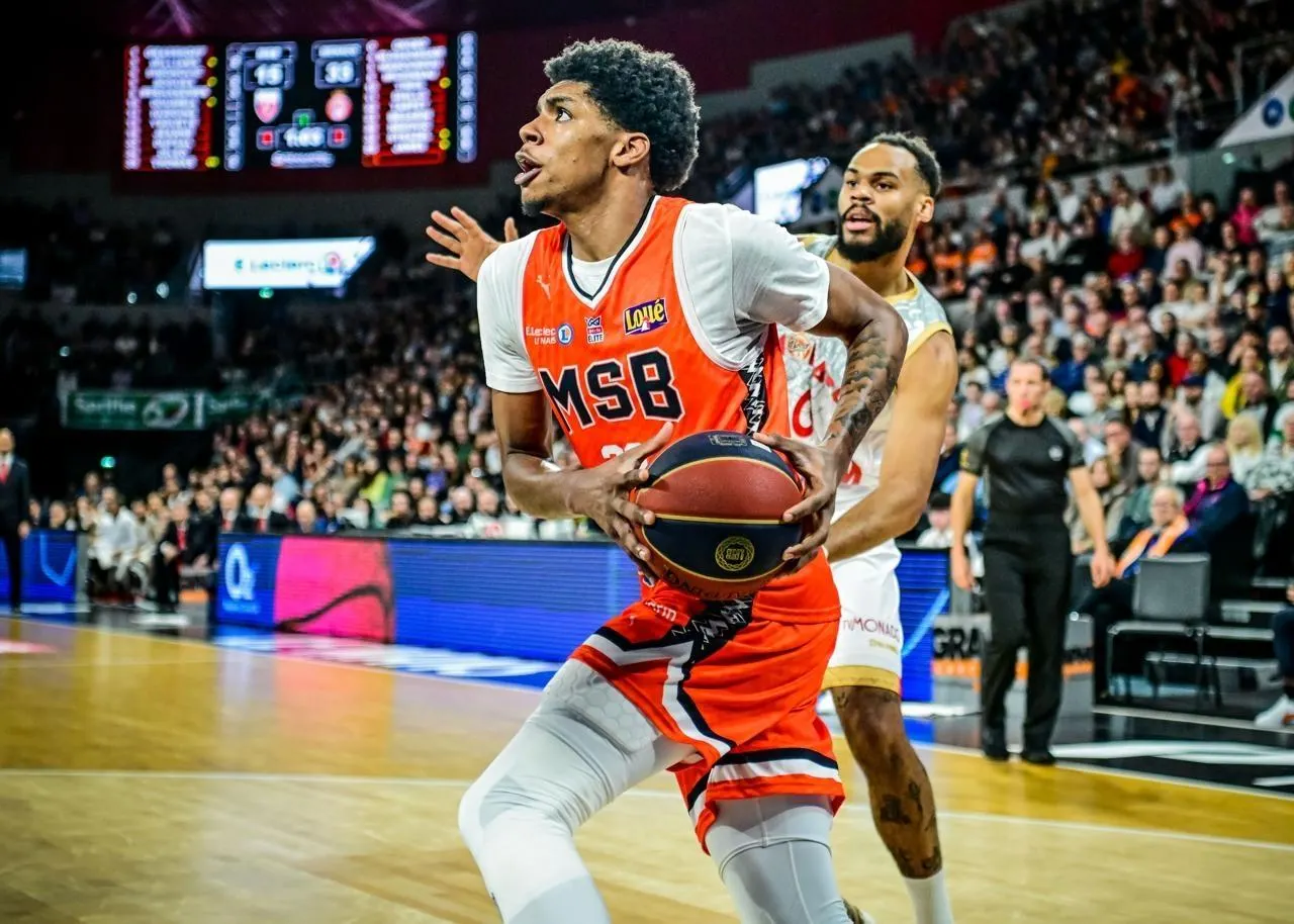 L’intérieur du MSB Lucas Duféal lors du match de Betclic Élite entre Le Mans et Monaco, le 16 novembre 2025 à Antarès. © Photo : Le Maine Libre - Yvon LOUÉ