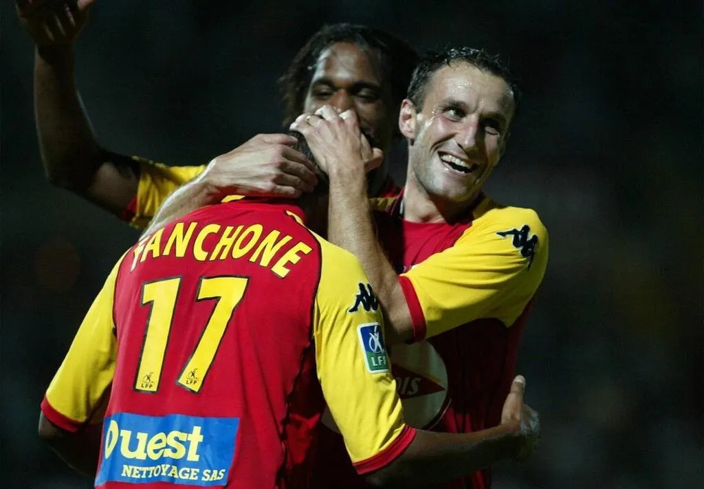 L’un des joueurs mythiques du Muc 72, Laurent Peyrelade, félicite James Fanchone après une victoire contre Le Havre en 2004. Archives Ouest-France