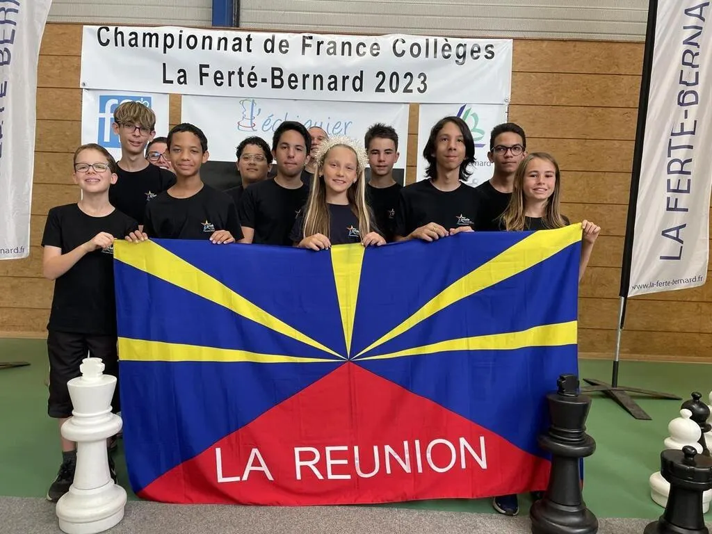 Parmi les 22 équipes engagées lors des championnats de France d’échecs des collèges du 16 au 18 juin 2023 à La Ferté-Bernard (Sarthe), la délégation de La Réunion vit une belle aventure collective. Après plus de 14 heures de voyage, ils ont découvert leur lieu de villégiature à 9500 kms de chez eux.