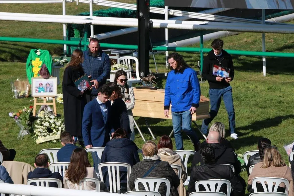 Jeudi 20 mars 2025, à Durtal (Maine-et-Loire), plus de 600 personnes ont rendu un dernier hommage à l’ancien jockey Alexandre Roussel, décédé le 14 mars. © Ouest-France