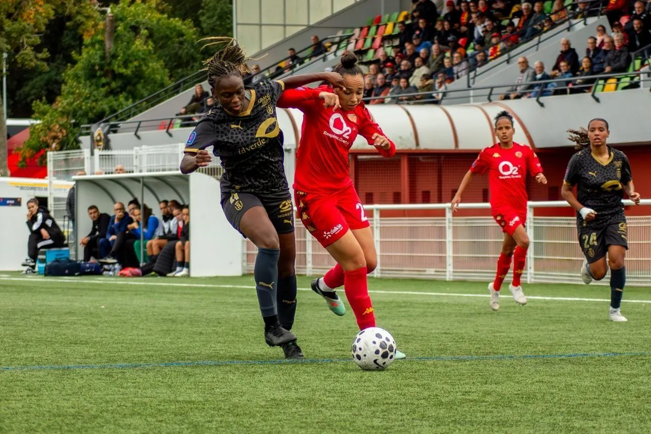 Kenza Chapelle (en rouge) avait inscrit un doublé dans la victoire mancelle contre Reims au match aller, le 27 septembre 2025. © Le Maine Libre