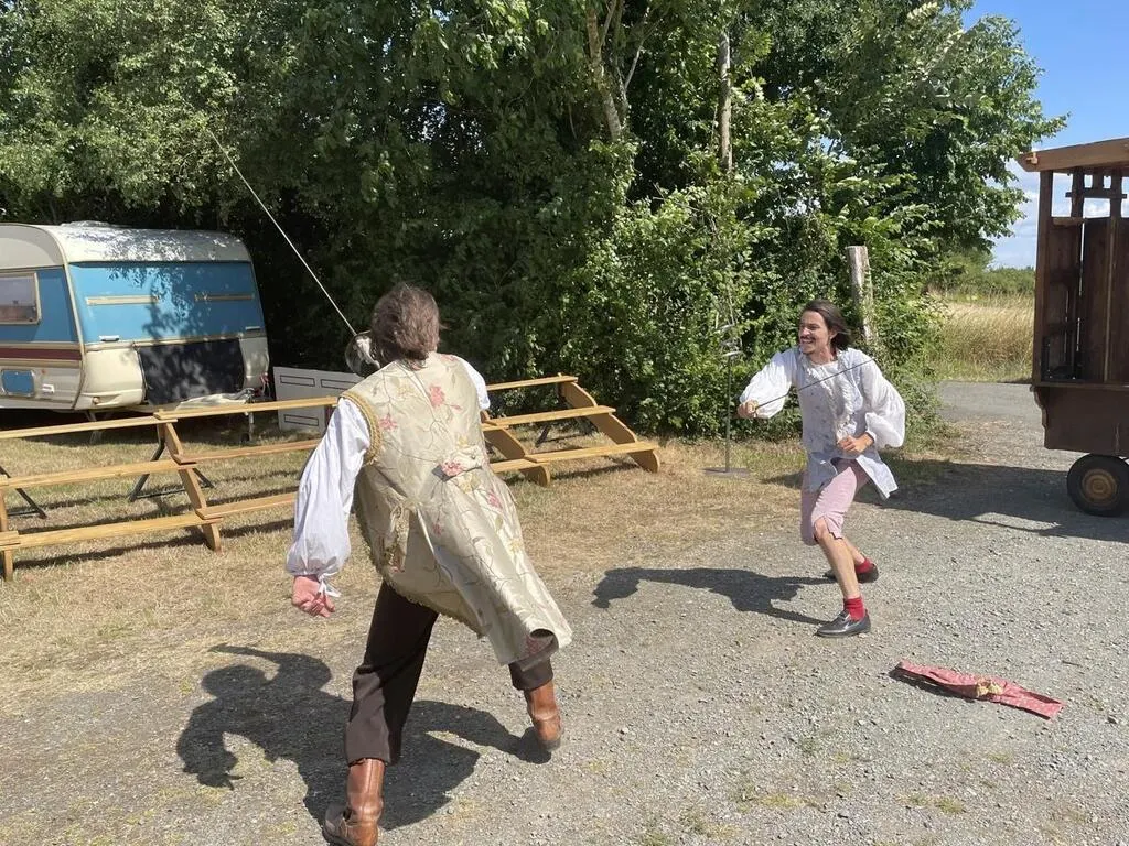 , lance Nicolas David.  On est trois semaines ensemble à répéter sur le territoire. On s’était vu une semaine en avril. On avait beaucoup travaillé l’escrime puisque c’est un spectacle de cape et d’épéeÂ