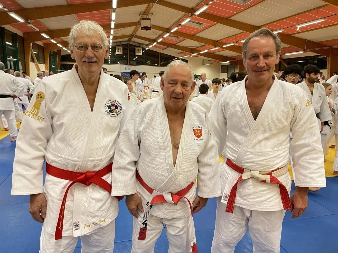 Jean-Luc Rouget, premier champion du monde de judo français, André Boutin, désormais 8e dan, et Fabien Canu, double champion du monde. © Ouest-France