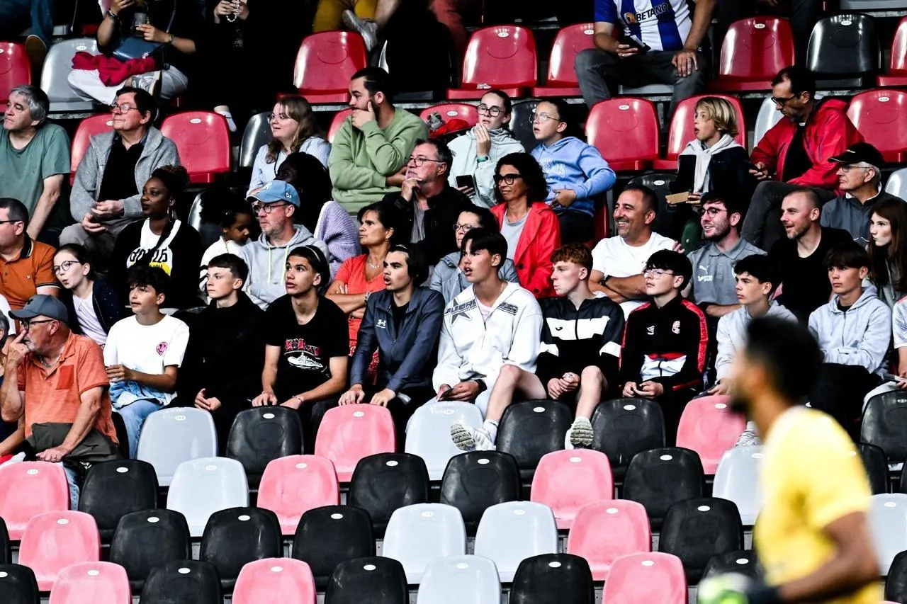 De nombreux sièges vides lors de ce match de Ligue 2, à Guingamp, en août 2024. Photo d’illustration. © GUILLAUME SALIGOT / OUEST-FRANCE