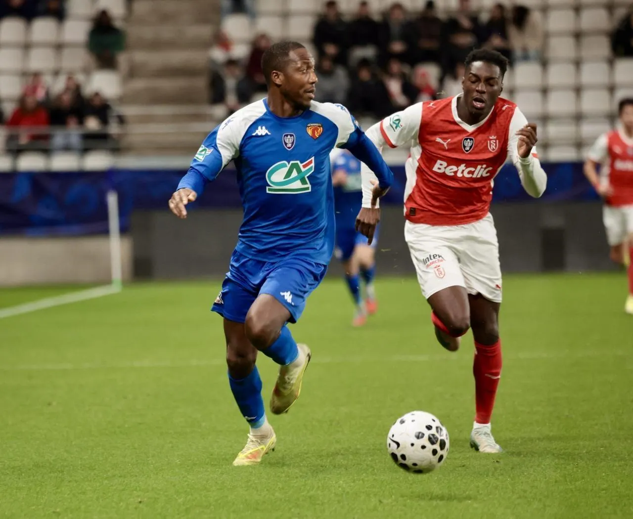 Samuel Yohou et Le Mans FC ont été éliminés en huitième de finale de la Coupe de France par le Stade de Reims. © PHOTOPQR/L’UNION DE REIMS/MAXPPP - Rémi Wafflart