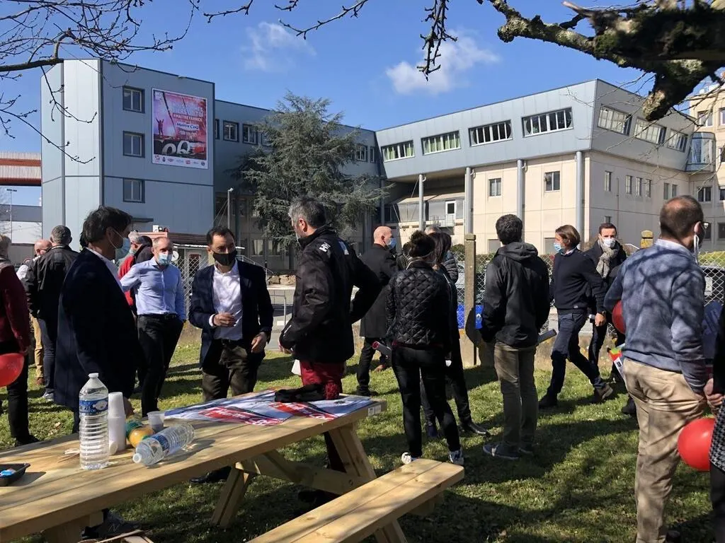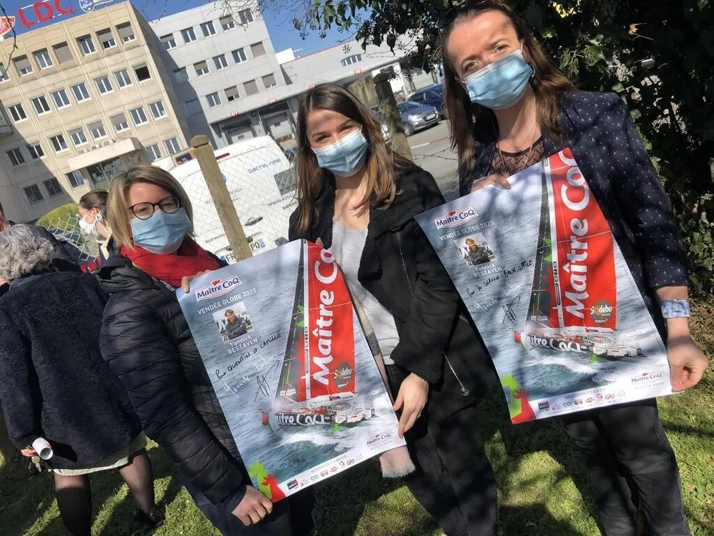 Scène de joie au siège du groupe LDC, à Sablé-sur-Sarthe, jeudi 25 mars 2021. Accompagnés par un grand soleil printanier, une trentaine de salariés sont venus à la rencontre du vainqueur du Vendée Globe édition 2020,
