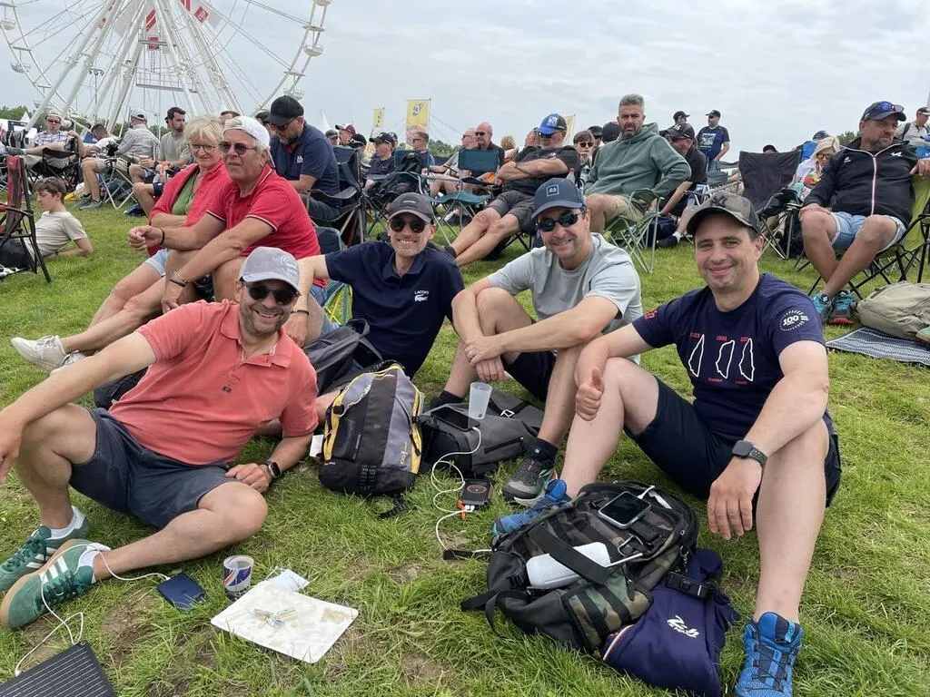 Stéphane, Serge, Nico et Tom, venus de région parisienne, ont pris leurs quartiers sur la « fan zone » du circuit de karting. © Ouest-France