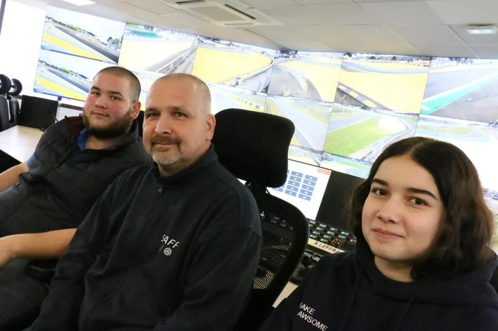 Alexandre Leffray avec ses deux enfants, Amandine et Julien, dans le PC course du circuit des 24Â Heures. © Ouest-France