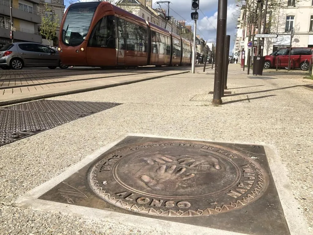 Au placard depuis 2019, les plaques de bronze comportant les empreintes des pilotes des 24 Heures du Mans sont en train d’être scellées au sol entre la gare et le haut de l’avenue du Général-Leclerc ce mois d’avril 2023. Elles ne sont pas forcément très visibles pour le moment, mais des panneaux informatifs devraient permettre de mieux les identifier.