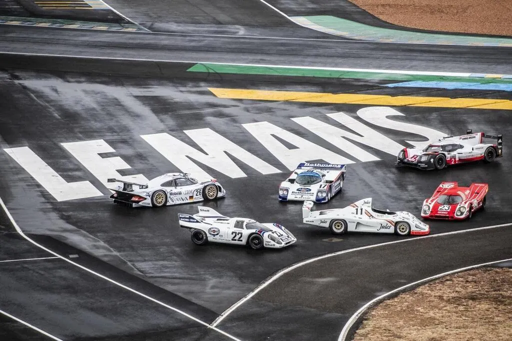 Porsche détient le record de victoires aux 24 Heures du Mans, avec 19 succès. Ici, cinq de ces voitures lauréates, dont la première 917 et la 919 Hybrid. © Porsche Media