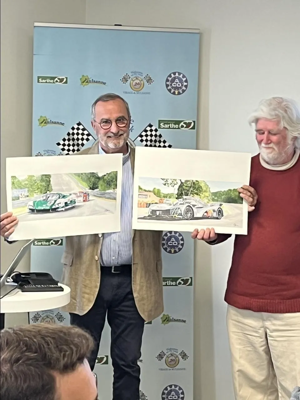 Philippe David, président du Virage de Mulsanne et Ray Toombs, peintre officiel de l’association. © Virage de Mulsanne