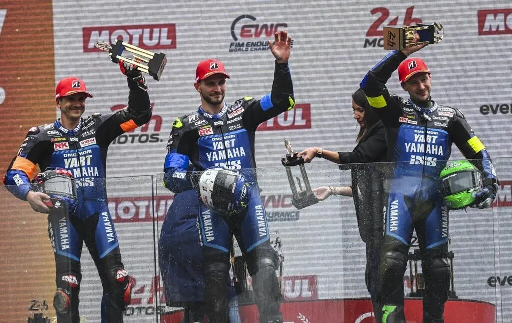 Jason O’Halloran, Karel Hanika et Marvin Fritz, le trio du Yart vainqueur des 24 Heures motos 2025. © Le Maine Libre - Denis LAMBERT