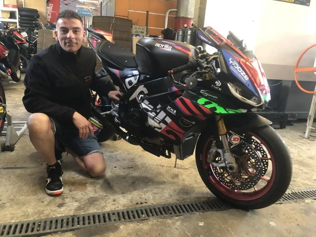 Emmanuel Parisse et son Aprilia RSV4, une Italienne de 1 100 cm3, vont concourir dans la catégorie superstock. © Ouest-France