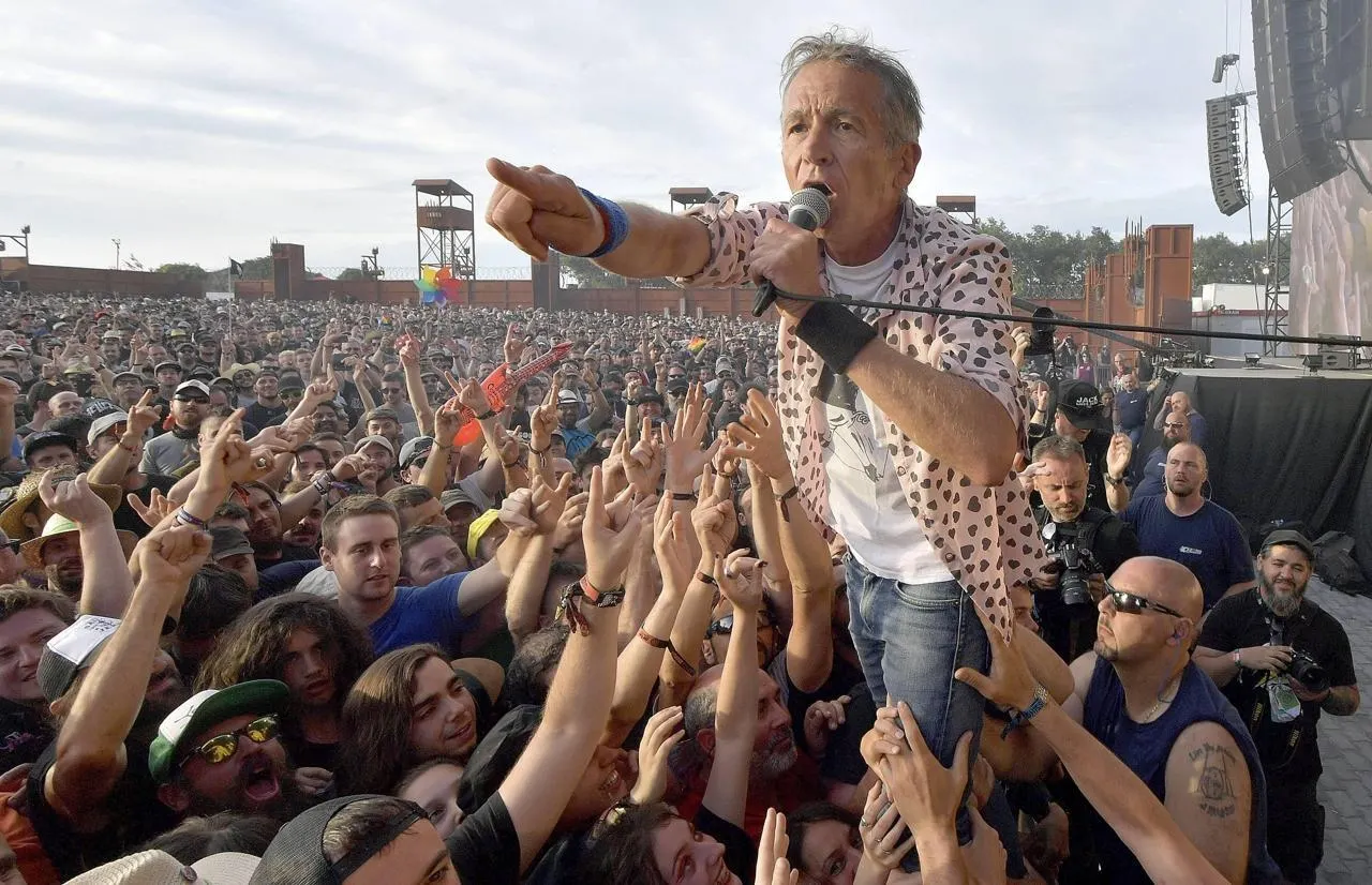 Le fantasque Didier Wampas, ici au Hellfest à Clisson (Loire-Atlantique) en 2019, toujours au plus près de son public. © Archives Jérôme Fouquet/Ouest-France