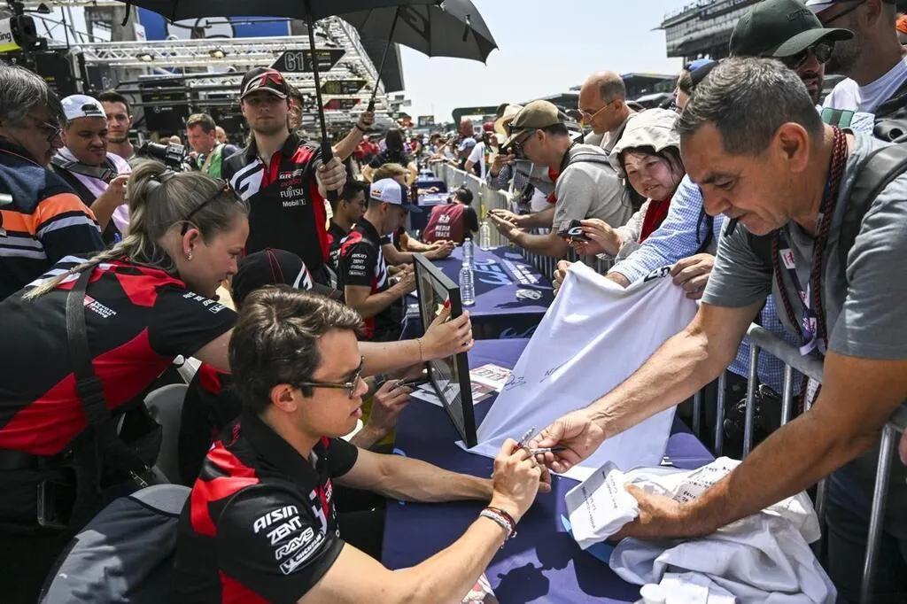 Dédicaces, selfies, goodies : ce mardi 10 juin 2025, sur le circuit du Mans (Sarthe), plusieurs milliers de fans des 24 Heures ont déambulé devant les stands et rencontré les pilotes engagés dans la 93e édition de la course.