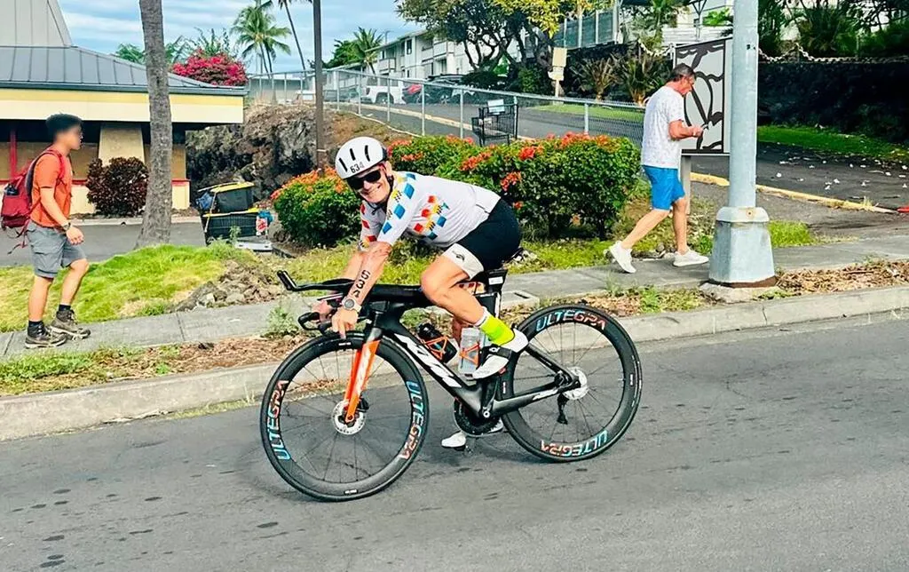 Gilles Pilette à Hawaï a parcouru 3, 8 km à la nage, 180 km de vélo et 42 km de course à pied. © Collection privée