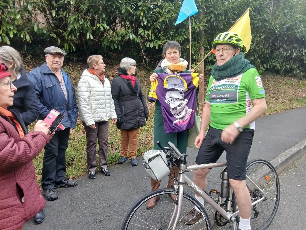 À l’issue de sa performance, Robert Cuizinaud a reçu un maillot de Raymond Poulidor. © Le Maine Libre