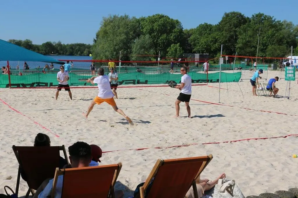 À La Flèche, la plage de la Monnerie accueille tout le week-end des tournois de beach tennis... |