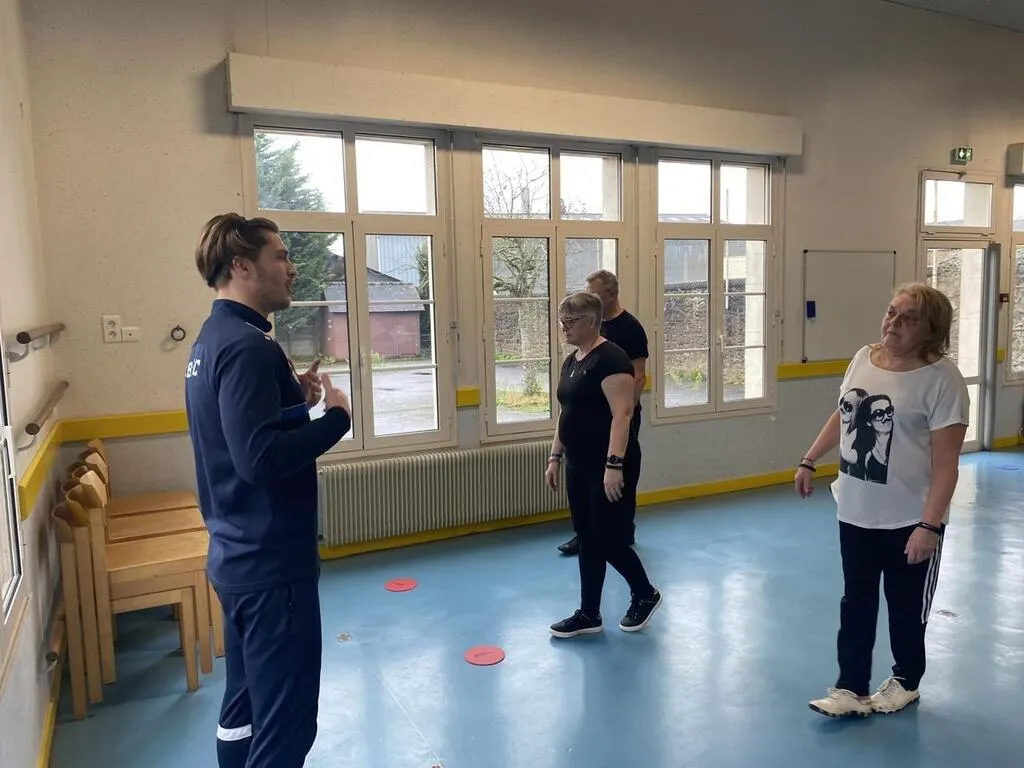 Antoine Bretonnière, éducateur spécialisé à la Sassa, donne ici un cours à des personnes inscrites sur ordonnance. © Le Maine Libre