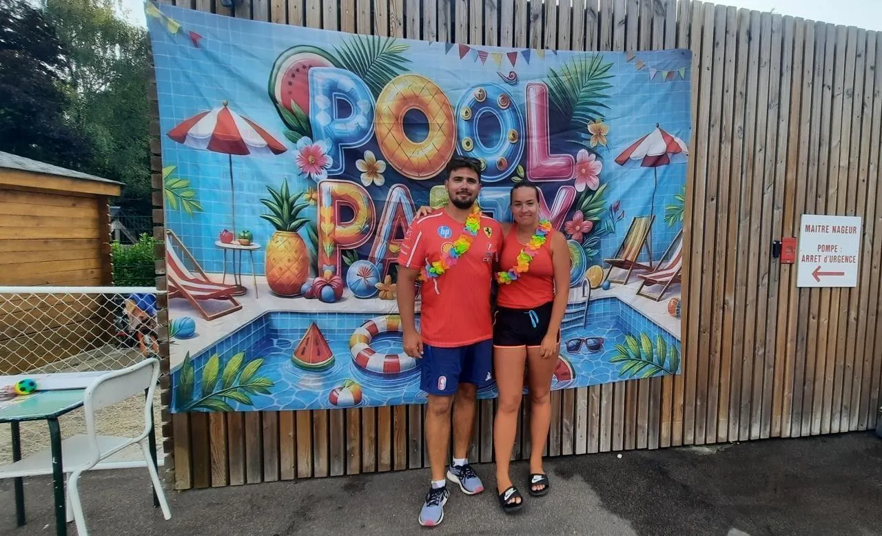 Au camping municipal de Luché-Pringé, Dylan et Emma, les deux maîtres nageurs, proposent aux usagers de la piscine de nombreuses activités aquatiques et festives. © Ouest-France